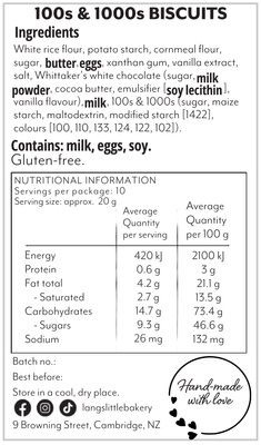10 biscuits made from our sugar cookie dough, topped with (pink) white chocolate icing and of course lots of 100s & 1000s.