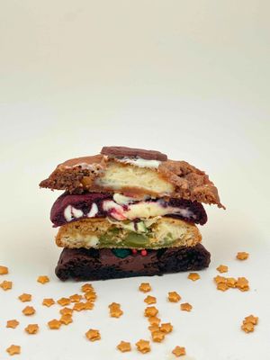 1x white chocolate pistachio cookie (brown butter cookie base, white chocolate, pistachio cream centre - gf)